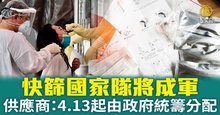 快篩國家隊將成軍 供應商:4/13起由政府統籌分配