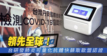 領先全球!台研發肺炎可量化抗體快篩取歐盟認證