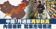 中國7月通膨再攀新高 內需疲軟 就業市場低迷