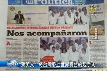 2016-06-28 12:34:03繼續看到總統蔡英文出訪的新聞,台北時間今天上午9點,總統已經抵達南美洲友邦巴拉圭。而在週日,蔡總統與60多國領袖與代表出席巴拿馬運河浚工儀式,巴拿馬四家平面媒體都以「台灣總統」稱呼蔡英文,她也與巴拿馬總統瓦雷拉 會晤,瓦雷拉說「支持兩岸關係的和平發展對話以及兩岸人民的繁榮」,蔡英文則希望,巴拿馬能持續協助台灣維繫兩岸和平。