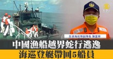 中國漁船越界蛇行逃逸 海巡登艇帶回5船員