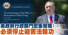 7月20日,法輪功學員反迫害21周年,美國國務卿發表聲明表明,必須停止迫害;美國政府多個行政部門,包括國務次卿、宗教自由大使、助理國務卿、多個使團及大使館也紛紛聲援。