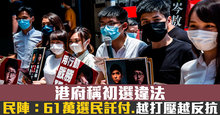 港府稱初選違法 民陣:61萬選民託付.越打壓越反抗