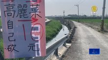 2023-03-24 21:48:27天氣變熱,高麗菜生長速度快,導致生產過剩、價格崩盤,彰化竹塘一名菜農,擔心雇工採收,還得加倍倒貼,乾脆開放民眾自採,每顆10元,減少成本損失。