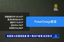 美國東北部遭遇風暴 數十萬用戶斷電 航班取消