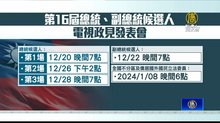 2023-10-23 19:14:552024年總統大選倒數不到百天,官方中選會規劃3場總統候選人電視政見發表會,將在12月20日、26日、28日登場,在同一週舉辦,而副總統候選人電視政見發表會於12月22日舉行。中選會表示,每一候選人在每場電視政見發表會,發表政見時間為30分鐘,分3輪發表政見,每一輪時間10分鐘。而全國不分區立委選舉政黨電視政見發表會,將在113年1月8日晚間舉行。