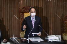 2021-12-24 12:46:23攸關新竹縣市合併升格的「地方制度法」修法,立法院民進黨團立委從21日開始,就在議場大門前輪值,確保「地制法」修正草案能排入今天立法院院會的增列報告事項;不過,國民黨立委在院會表決議事日程草案結束時,大喊「反對地制法逕付二讀」一擁而上衝上議場主席台,而主持今日院會的立法院長游錫?宣布會議休息。