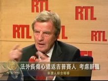 2010-08-31 00:24:15法國外交部長庫甚內爾30日接受法國電臺採訪時,談到具有爭議的、政府打擊吉普賽人營地,並遣返吉普賽人的活動時,他表示為此感到不安和傷心,考慮辭職。