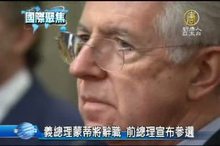 2012-12-11 21:39:32義大利總理蒙蒂宣布,將在2013年度預算案獲議會批准後辭去總理職務,也讓義大利最快將於明年2月舉行大選。義大利前總理貝魯斯柯尼也宣布將參加明年總理大選。而對義大利現有改革將中斷的疑慮,也引發了市場動盪,歐洲各國表示關切。