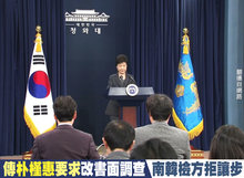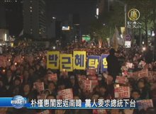 2016-11-30 20:45:35歡迎回來,身陷閨密門風暴的南韓總統朴槿惠,昨天公開發表電視演說,表示願意辭職下台,但是要在國會通過權力移交計畫之後。而南韓三大在野黨今天舉行會談後決定,會繼續推動彈劾,也不會與執政黨,會商朴槿惠任期縮減的問題。