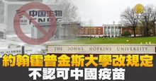 約翰霍普金斯大學改規定 不認可中國疫苗