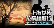 中共七常委亮相當日 上海女孩拉橫幅遊行