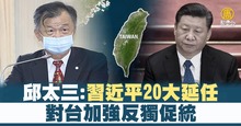 2022-10-06 10:19:46陸委會主委邱太三今天在立法院說,中共總書記習近平在中共20大延任後,北京當局對台工作進入加強實踐反獨促統,陸委會將持續評估掌握中共謀台策略及動態,研判可能發展。