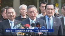 2023-11-17 19:16:07國民黨與民眾黨總統大選「藍白合」結果,將在週六(18日)上午十點,由馬英九基金會公佈。分別由藍、白兩黨和馬英九推派的3位統計專家,檢視本月7日到17日社會公布的民調數據,以及兩黨提供的內參民調,決定最後是「侯柯配」還是「柯侯配」。