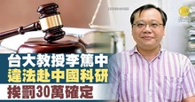台大教授李篤中違法赴中國科研 挨罰30萬確定