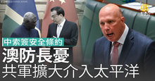 中索簽安全條約 澳防長憂共軍擴大介入太平洋