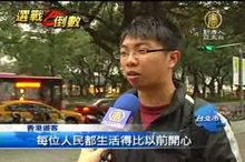 2012-01-13 21:10:26總統大選進入倒數計時,選情越來越緊張,各方候選人火力全開,就連香港人也關注台灣選情,親自來台,感受台灣民主。而在目前選情緊繃的情勢下,大部分的選民,似乎仍舊最關心兩岸議題。