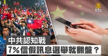2023-10-05 20:22:44有專家警告:中共花錢買民調意圖影響台灣大選,只要有20%的人看過假訊息,7%的人相信,選情就會翻盤。請教老師您怎麼看中共這一波對台灣的認知戰?