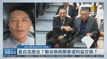 2023-10-17 20:22:232024總統大選,藍白幕僚在上週六見面磋商「藍白合」議題,藍營提「民主初選」、白陣營堅持「民調」,幕僚會後似乎卡關。侯友宜表示,會釋出最大善意,持續溝通;柯辦則回應希望藍營提出具體辦法再二次會。請教老師,您怎麼看藍白合?又會對選情帶來哪些影響?
