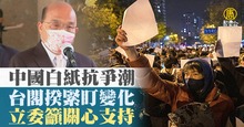 中國白紙抗爭潮 台閣揆緊盯變化.立委籲關心支持