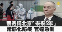 蔡奇稱北京「未來5年」常態化防疫 官媒急刪