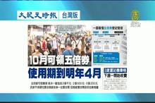 接著看到大紀元時報台灣版報導:10月可領五倍券,使用期到明年4月。