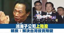 鴻海子公司上陸股 賴揆:解決台灣投資障礙