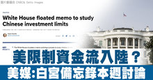 美限制資金流入陸?美媒:白宮備忘錄本週討論