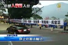 2012-02-19 21:16:40北京市長郭金龍在台灣第四天,離開台北前往中部,預計晚間在日月潭過夜。不過,無論是在台北還是在中部,郭金龍所到之處,都看得到法輪功學員拉著橫幅,要求停止迫害的呼聲。法輪功學員表示,郭金龍是參與迫害法輪功的血腥劊子手,政府不該放行人權惡棍來台灣,任它散布共產黨樣板文化。