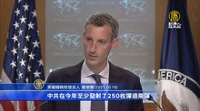 2021-10-21 12:42:21新聞開始,先來關心,美國國務院發言人普萊斯18日表示,對中共在8月測試一枚具有核能力的高超音速飛彈的消息,不予置評。不過,普萊斯批評,中共核能力迅速擴張令人關切,尤其缺乏透明度令人擔心。普萊斯指出,光是今年截至九月,中共就試射了250枚彈道飛彈。美國總統拜登20日也對中共試射高超音速飛彈的消息表達關切。