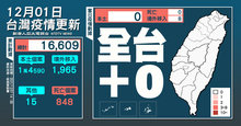 2021-12-01 15:08:07今(1)日中央流行疫情指揮中心公布,國內本土病例持續零確診,新增8例COVID-19境外移入確定病例;另確診個案中無新增死亡。