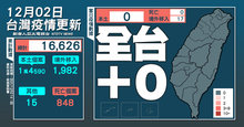 2021-12-02 14:42:24今(2)日中央流行疫情指揮中心公布,國內本土病例持續零確診,新增17例COVID-19境外移入確定病例;另確診個案中無新增死亡。