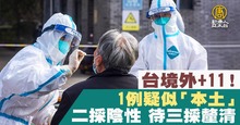 台境外+11!1例疑似「本土」二採陰性 待三採釐清