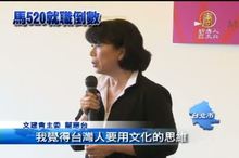 2012-05-16 21:24:24520後,即將成立文化部,首任文建會主委龍應台今天期許「文化部能做為中華文化銜接的典範」,對於 兩岸未來在文化交流的發展方向,龍應台表示,台灣人,要用文化的思維,文化的方法去保障兩岸的和平。