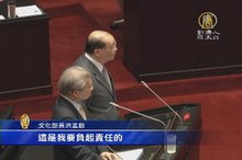 2015-10-16 21:16:30文化部補助款洩密風波愈演愈大,傳出行政院打算快刀斬亂麻,不排除要部長洪孟啟與次長邱于芸一起打包走人,院長毛治國上午備詢時,就直言邱于芸寄存證信函給部長的行為不妥,要求文化部盡快回到正軌。