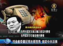 2015-07-29 12:46:46中共河北省委書記周本順落馬,外界議論貪腐濫權時,總部位於美國的《追查迫害法輪功國際組織》調查,其中,周本順在電話中,承認了,中共活摘法輪功學員器官罪行。