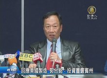 2017-01-23 15:26:59鴻海總裁郭台銘1月22日證實有意投資美國,目前評估協助夏普(SHARP)在美國製造面板,以及新收購的加拿大軟體公司擬搬遷至美國案等。蘋果也有意支持,若投資定案,估計投資超過70億美元(新臺幣2,200億元),郭台銘稱是「多贏策略」。