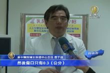 2015-04-20 21:55:09根據衛福部統計,乳癌一直是台灣婦女十大癌症的首位,而且有越來越年輕的趨勢,有醫院引進跟歐美同步的最新微創手術,讓患者傷口只有0.3公分,術後只需休息半個小時便可回家,減輕病人及家屬負擔 。