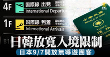 日韓放寬入境限制 日本9月7日開放無導遊團客