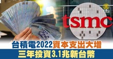 台積電2022資本支出大增 三年投資3.1兆新台幣