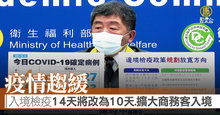疫情趨緩 入境檢疫14天將改為10天.擴大商務客入境