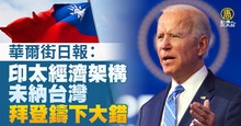 華爾街日報:印太經濟架構未納台灣 拜登鑄下大錯