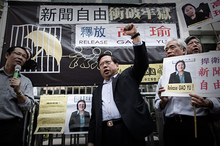 2014-05-12 21:25:24香港各團體星期天(11日)在北京駐港機構中聯辦外示威,抗議當局拘捕獨立媒體人高瑜,中國大陸資深記者高瑜,以敢言著稱,上個月以洩漏國家機密罪被捕。