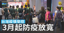 2022-03-01 20:44:57來看到,台灣本土疫情連日來都新增個位數,指揮中心從3月(1日)開始再放寬防疫措施,包括運動、拍照都能脫口罩,雙鐵客運飲食同時鬆綁。同時指揮中心也在今天宣布,打了追加劑的機組員,返台檢疫期可以再縮短,從「5+9」變成「5+5」。