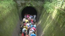 2019-05-06 21:39:08桃園農田水利會慶祝創會百周年,舉行桃園大圳健行活動,2千個名額2天內就額滿,活動當天(5日),許多首次走在伸手不見五指隧道內的民眾表示,對這特殊的經驗印象深刻,興奮直呼「好難得」。