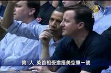 2012-03-14 21:40:57週二(13日)英國首相卡麥隆受美國總統歐巴馬的邀請,從華盛頓附近的安德魯斯空軍基地搭乘空軍一號到俄亥俄州觀看美國大學籃球賽,成為有史以來受邀搭乘美國總統座機空軍一號的第1人。