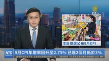 9月CPI年增率回升至2.75% 已連2個月低於3%
