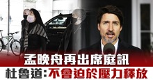2021-03-02 12:55:01加拿大法院1日再度開庭審理,華為財務長孟晚舟的引渡案。加拿大總理杜魯道向媒體表示,不會因為中共的施壓,而釋放孟晚舟。