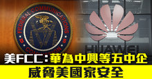 美FCC:華為中興等五中企 威脅美國家安全
