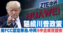 延續川普政策 美FCC認定華為.中興5中企威脅國安